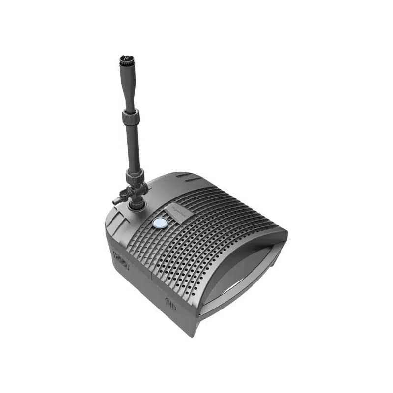Complet, le filtre est équipé d'une pompe d'un débit de 2900 L/H, d'une lampe UVC de 11 Watts et d'un jet d'eau.